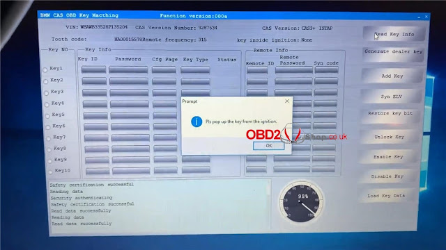 Pop up the key from the ignition, click “OK”>> Save Key Info >> Select Key5 >> Generate Dealer Key